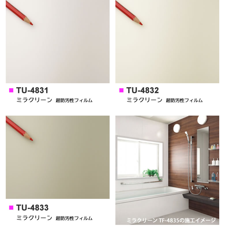 〜 壁と床を一緒にリノベーションしませんか? 〜 簡単カットのパネル下地でプロの仕上がり サンゲツ お風呂の床材 オフロア 大人気 冷たい 滑って怖い を解決 浴室床材 揃っています 商品説明 品番 ミラクリーン超防汚性フィルム カラー 全3点 ( )は旧品番となります。